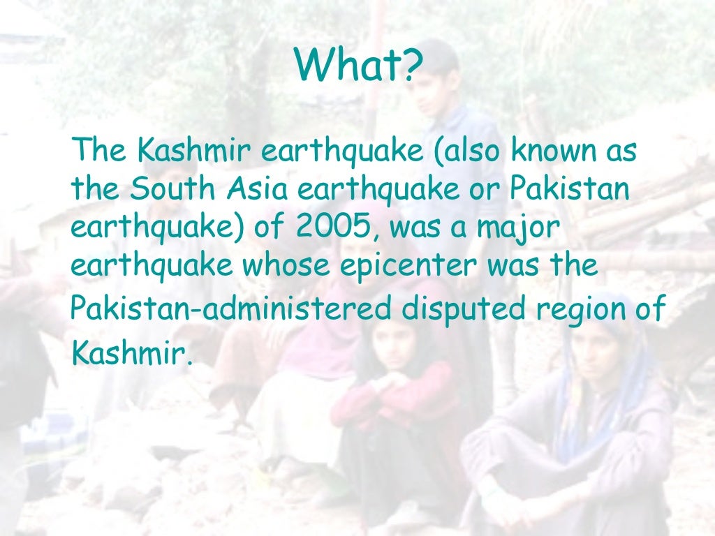 19.10.2021 07:54Kashmir earthquake 2005 case study for BA thesis harry potter. Effects-31 people killed - further 300 deaths from extreme rimy weather that class.